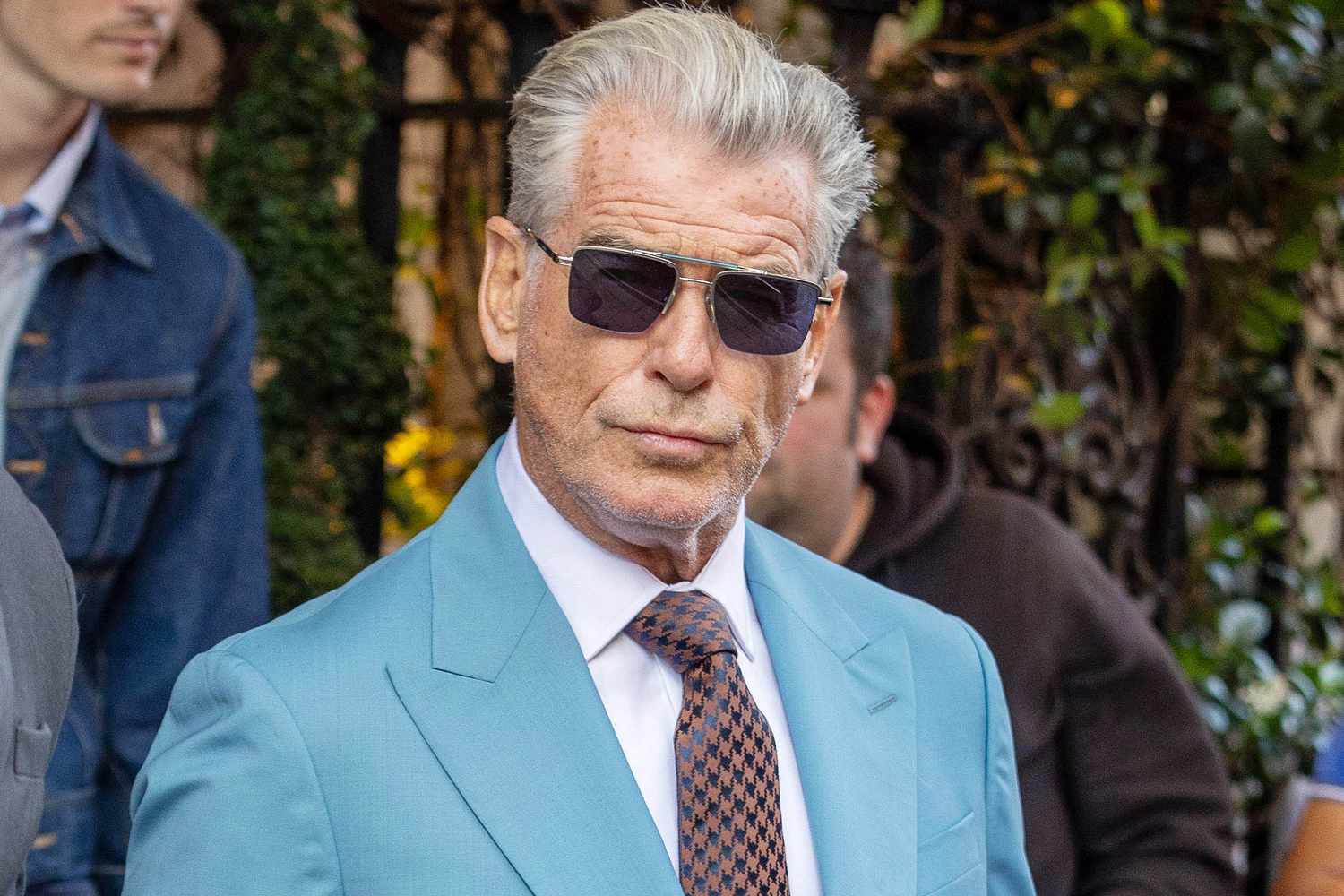 Pierce Brosnan opts for a bright blue suit for his One Show appearance in London to promote The Thursday Murder Club on Aug. 20.